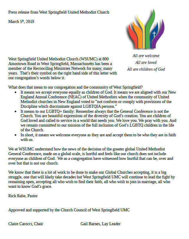 West Springfield UMC Statement on the General Conference to our community Share this: Click to share on X (Opens in new window) X Click to share on Facebook (Opens in new window) Facebook Like Loading... Related Comments are closed.