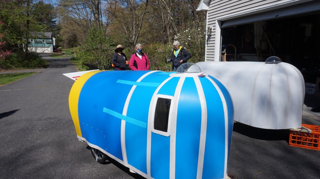 Gail and Dave Barnes along with my nephew Joseph paid a visit to the director of Humanity Pod, Melinda Shaw’s house on Saturday. Melinda has a real passion for helping the homeless. Her latest project is called “Hope on Wheels” (see www.humanitypods.org ). Her goal is to build 21 bicycle pulled shelter/trailers for distribution to homeless in and around Northampton. Below is the mission statement for the organization.